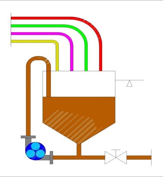Posicionado a la salida de un tanque, gracias al efecto de bombeo, permite la circulación de los líquidos en el contenedor.