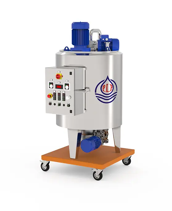 Una volta terminato il dosaggio si aziona il sistema di miscelazione emulsionatore F400 (con la possibilità di installare l’omogeneizzatore).