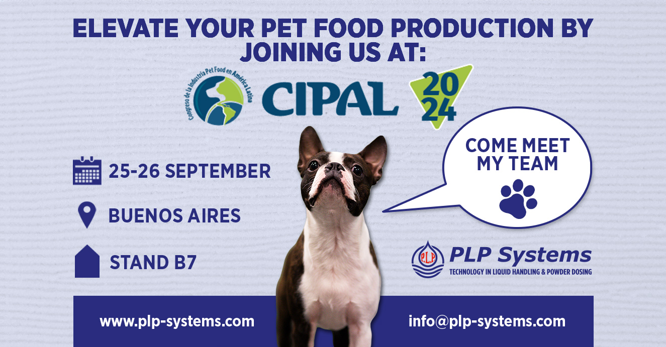 PLP Systems participará en CIPAL, el Congreso Internacional organizado por All Pet Food, que se llevará a cabo en Argentina del 25 al 26 de septiembre. Este evento clave ofrece una plataforma para actualizarse sobre las últimas tendencias en la industria del pet food en América Latina, especialmente en lo que respecta a las tecnologías de producción de alimentos para mascotas.